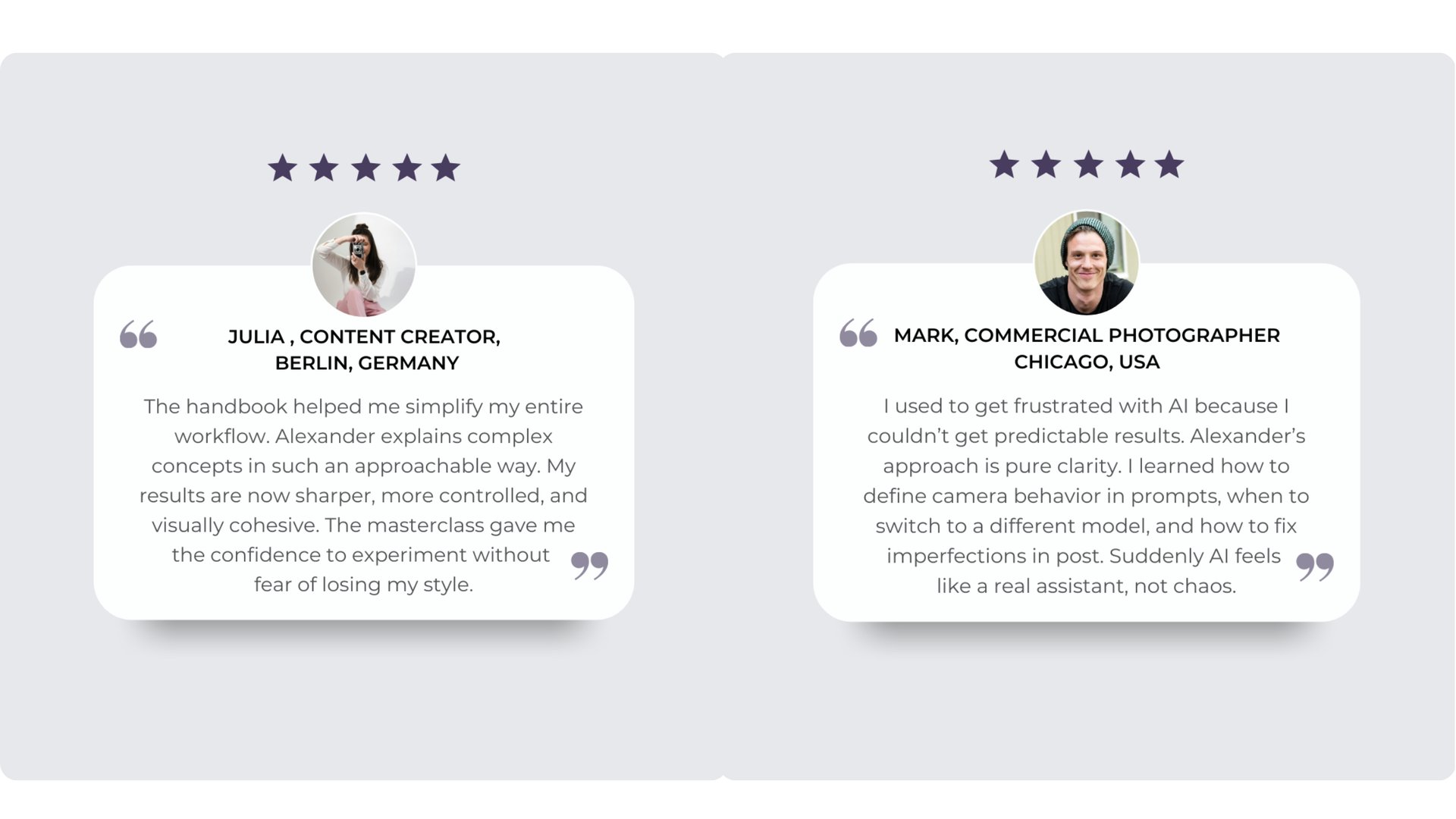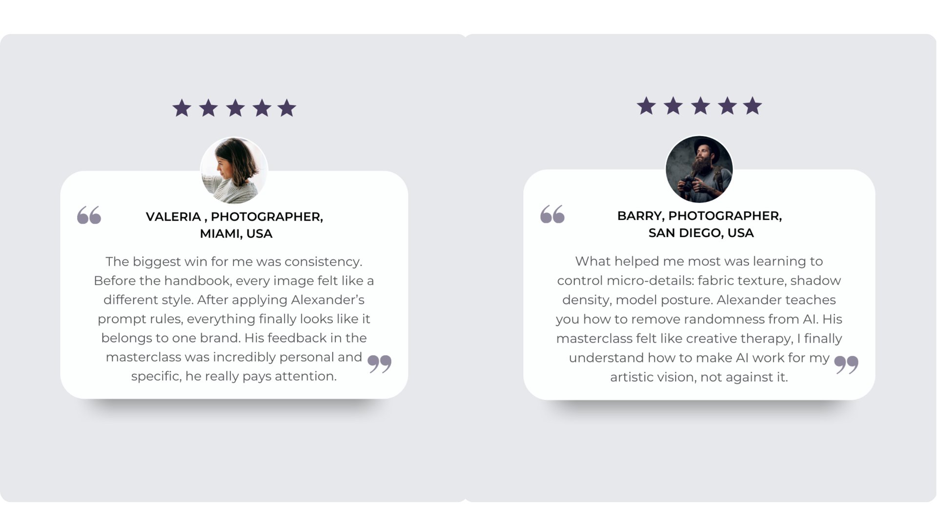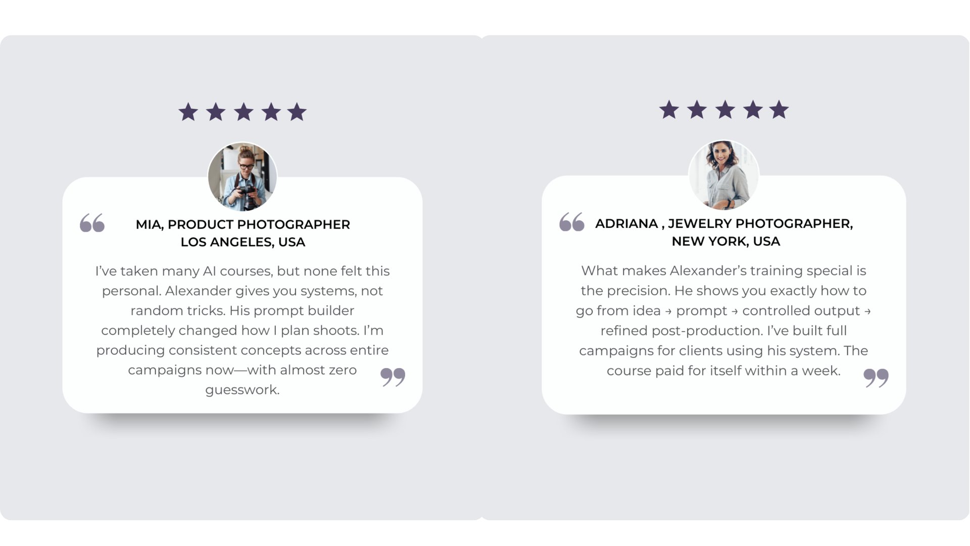 Photographers and creatives using my AI system in their everyday work with brands share how it helps them take full creative control, produce consistent, on-brand visuals, and bring their ideas to life faster and smarter.